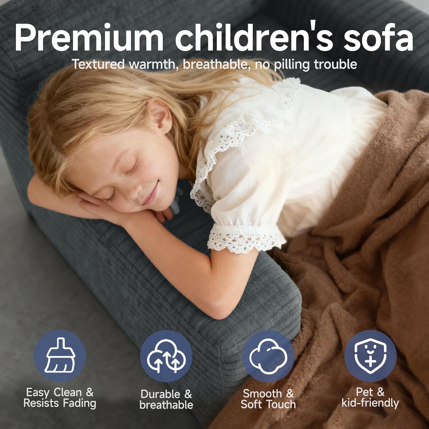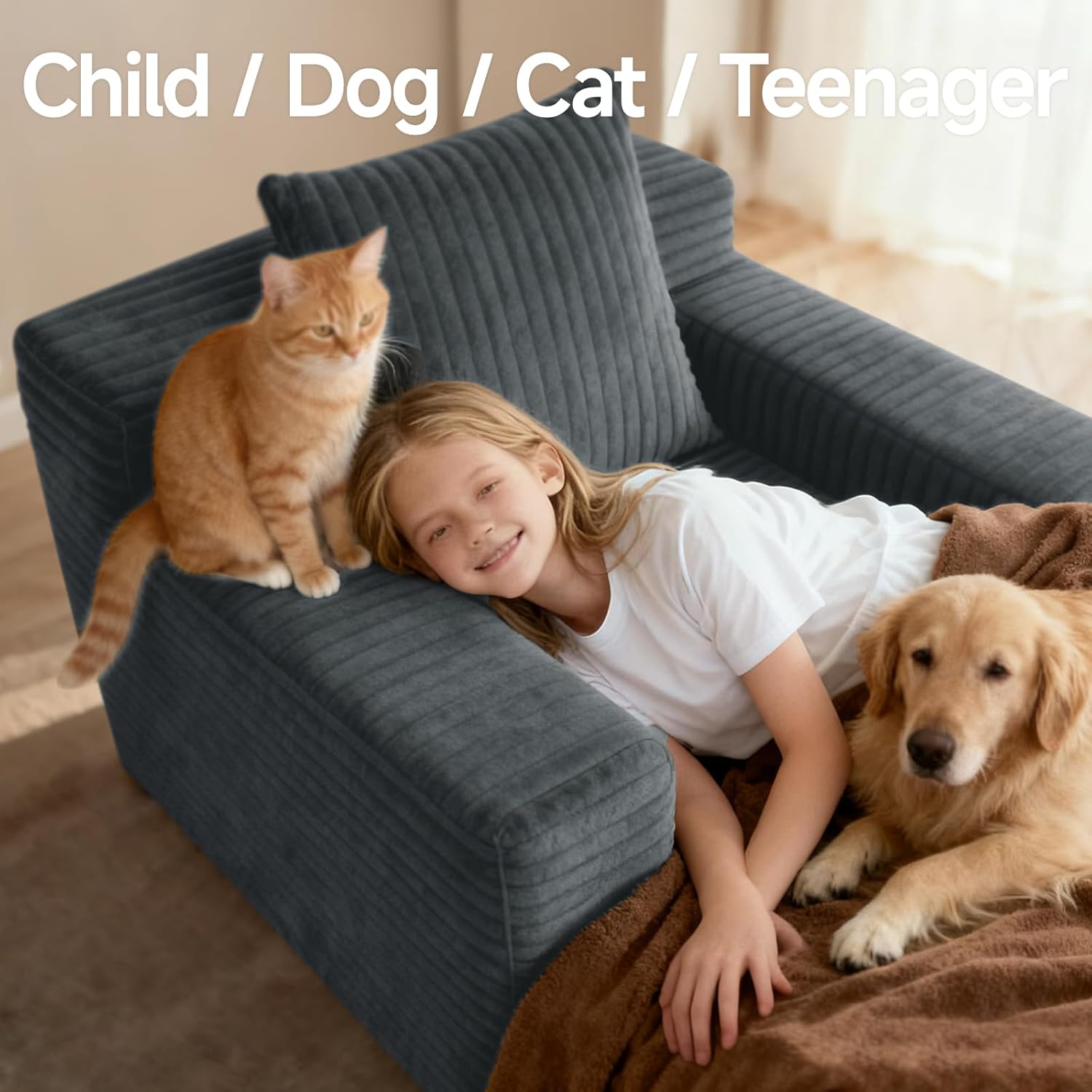 45'' Chaise Lounge Chair Indoor, Corduroy Upholstered Boneless Sofa Bed, Deep Seat Sleeper Couch Reading Chairs, Small Comfy Cloud Sofas Couches for Living Room, Bedroom, Movie Room (Dark Grey)