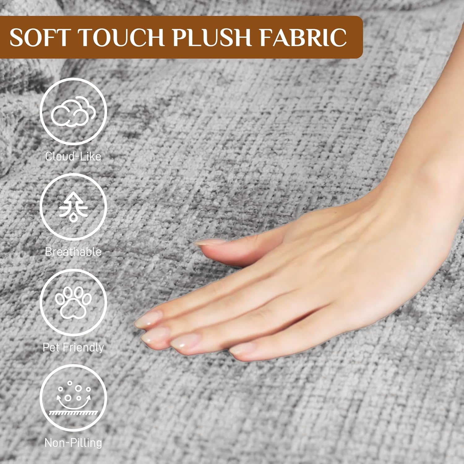 81” Oversized Upholstered Sofa Bed, Round Chaise Lounge Chair Indoor, Fluffy Plush Chaise Lounge, Modern Chenille Cloud Couch with Deep Seat, Comfy Bean Bag Chiar for Living Room Apartment, Light Grey