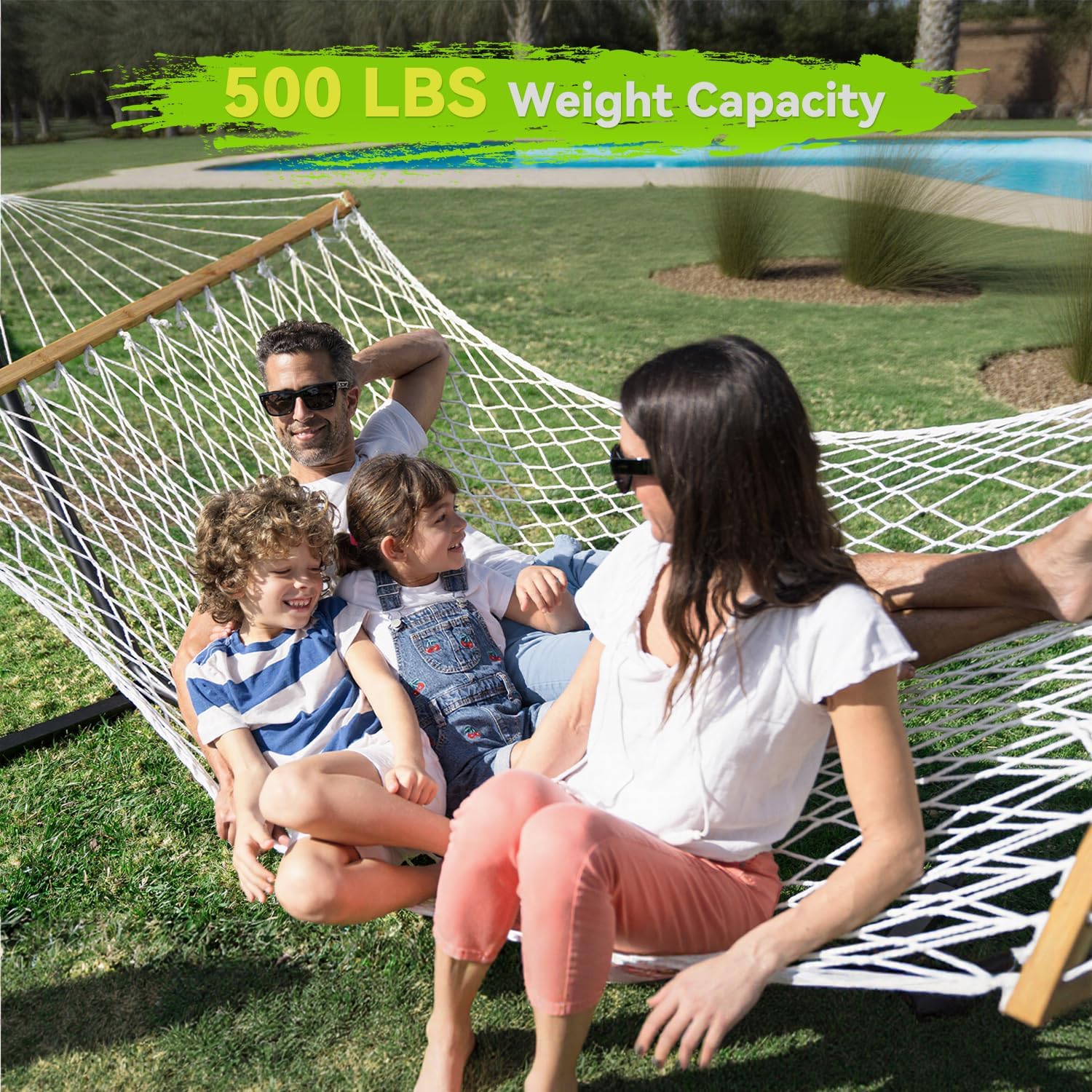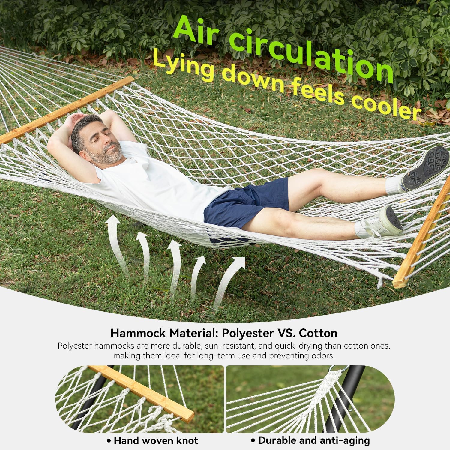 Double Hammock for 2 Person, Handwoven Rope Hammock with Spreader Bar Without Stand - Indoor & Outdoor Use for Patio, Poolside, Backyard (White)