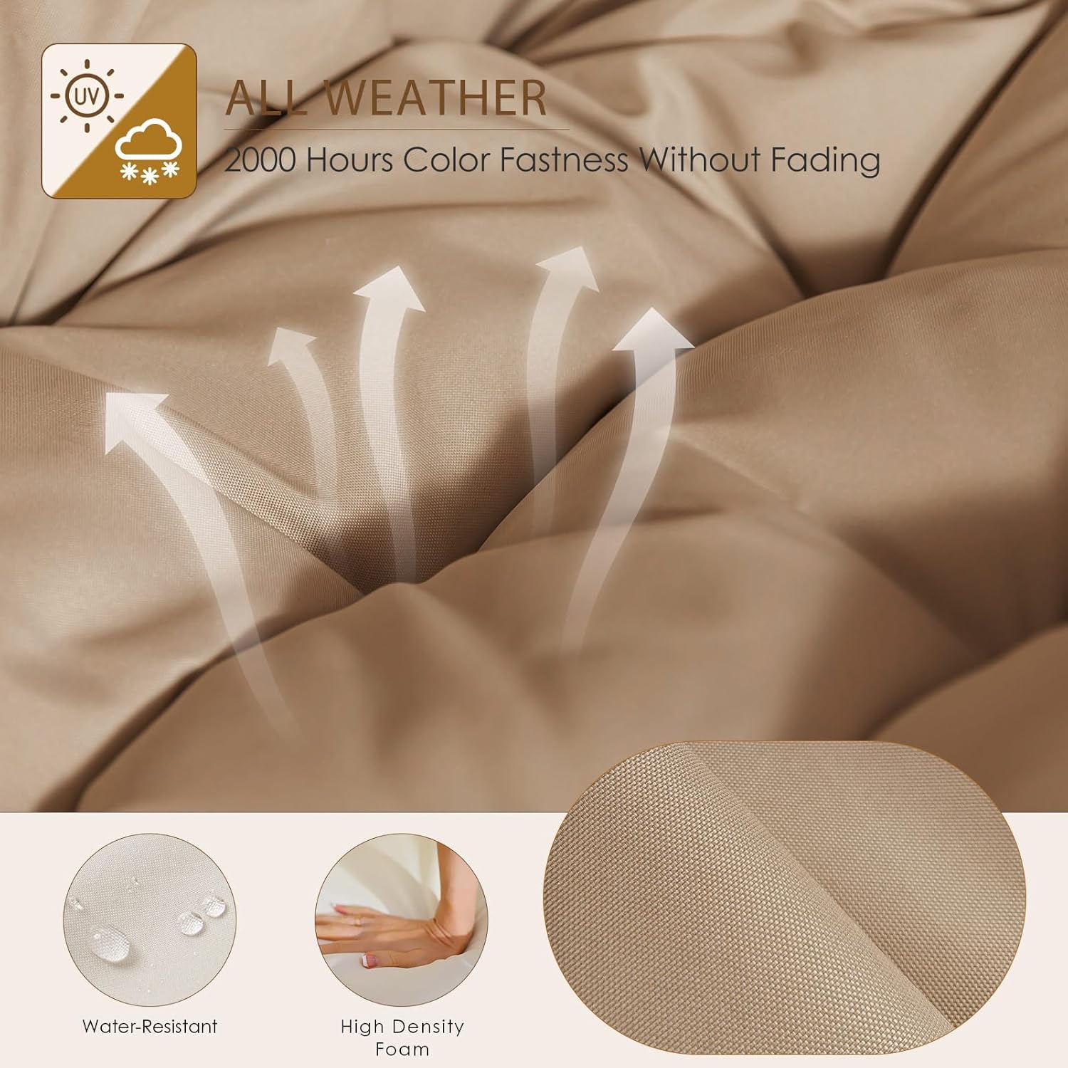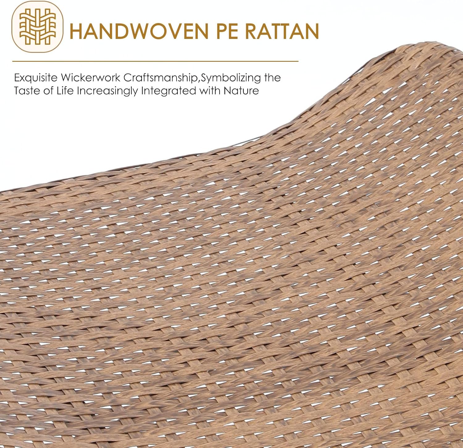 NICESOUL Indoor Outdoor Ottoman Set of 2, Large Wide Double Patio Footstool, PE Rattan Thicken Cushioned Footrest, All-Weather Wicker Furniture for Balcony, Porch, Living Room, Egg Chair, Brown