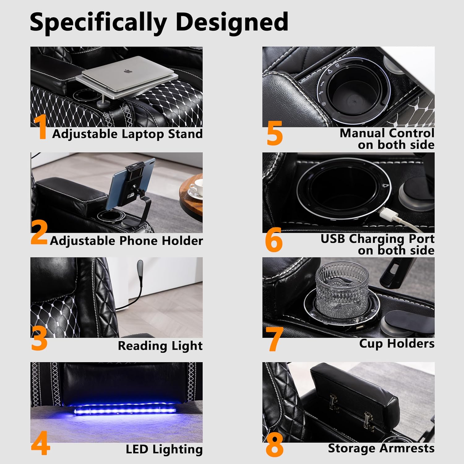 Power Zero Gravity Recliner Chair for Adults Breathable Leather Electric Recliners Adjustable Home Theater Seating with Smart Cup Holders, USB Ports, Hidden Arm Storage, Tray Table